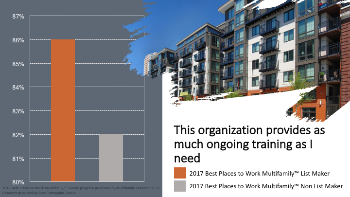Amongst those that made the list of the Best Places to Work Multifamily™ 86% believe their organization provides as much ongoing training as they need.