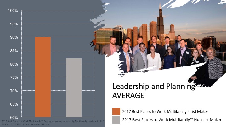 Amongst those that made the list, there is an average of 90% engagement for the aggregate response in the Leadership & Planning section.
