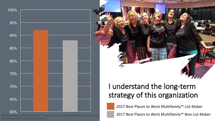 Amongst those that made the list of the Best Places to Work Multifamily™ 92% understand the long term vision of their organization.
