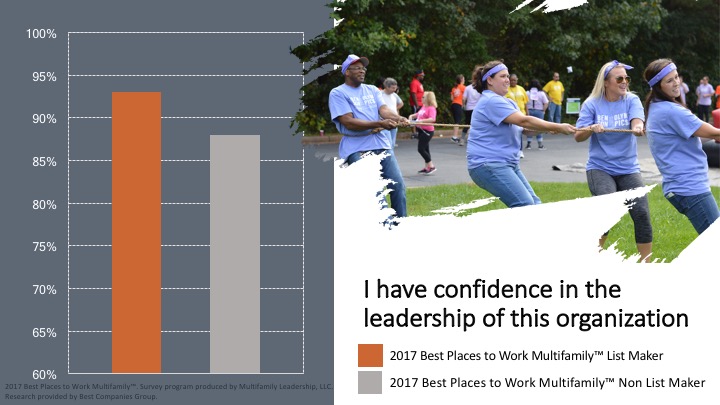 Amongst those that made the list of the Best Places to Work Multifamily™ 93% have confidence in the leadership of their organization.
