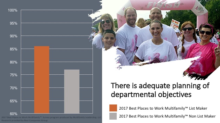 Amongst those that made the list of the Best Places to Work Multifamily™ 86% agree that there is adequate planning of departmental objectives.
