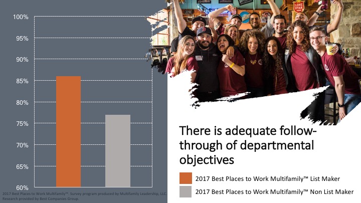 Amongst those that made the list of the Best Places to Work Multifamily™ 86% agree there is adequate follow-through of departmental objectives.