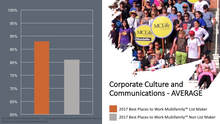 Amongst those that made the list, there is an average of 88% engagement for the aggregate response in the Corporate Culture & Communications section.