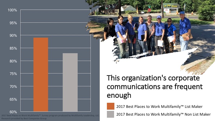 Amongst those that made the list of the Best Places to Work Multifamily™ 89% agree their organization’s corporate communications are frequent enough.