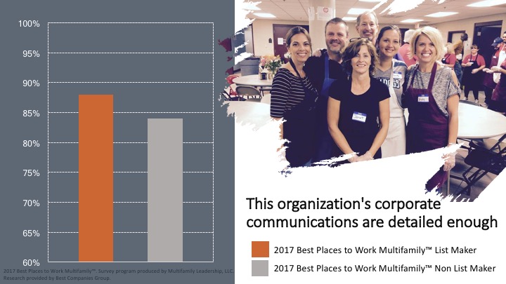 Amongst those that made the list of the Best Places to Work Multifamily™ 88% agree their organization’s corporate communications are detailed enough.