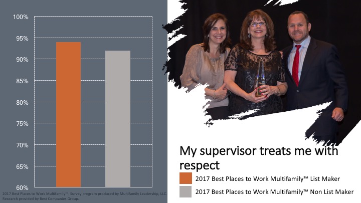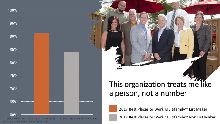 Amongst those that made the list of the Best Places to Work Multifamily™ 91% agree their organization treats them like a person, not a number.