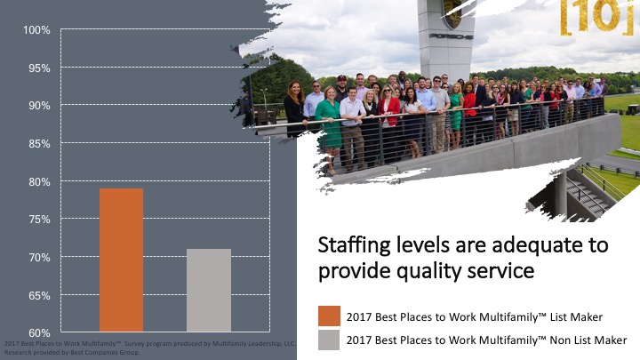 Amongst those that made the list of the Best Places to Work Multifamily™ 79% agree staffing levels are adequate to provide quality products/services.