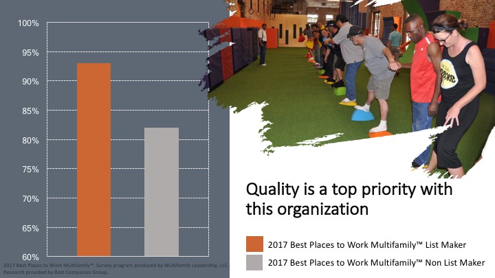Amongst those that made the list of the Best Places to Work Multifamily™ 93% believe quality is a top priority with their organization.