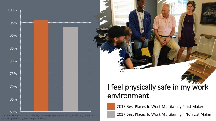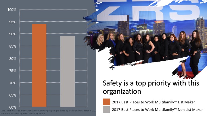Amongst those that made the list of the Best Places to Work Multifamily™ 94% believe safety to be a top priority with their organization.