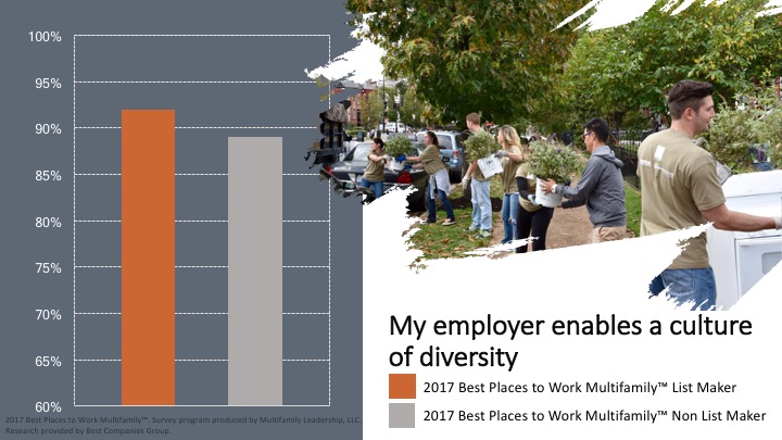 Amongst those that made the list of the Best Places to Work Multifamily™ 92% agree their employer enables a culture of diversity.