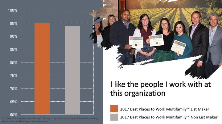 Amongst those that made the list of the Best Places to Work Multifamily™ 95% like the people they work with at their organization.