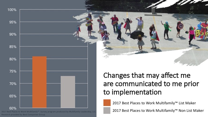 Amongst those that made the list of the Best Places to Work Multifamily™ 81% believe changes that may affect them are communicated to them prior to implementation.