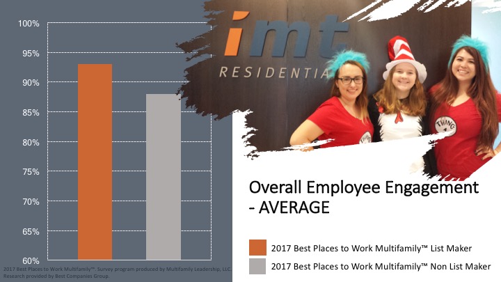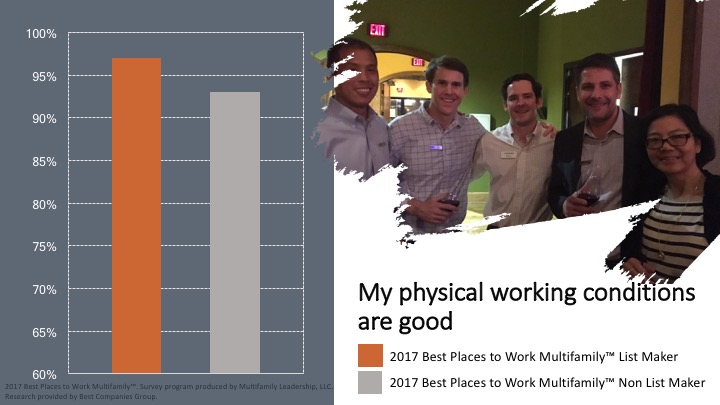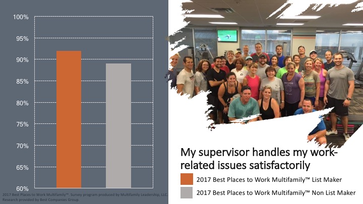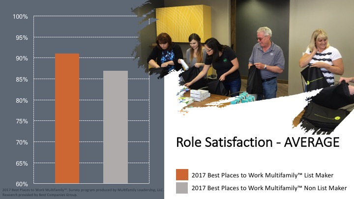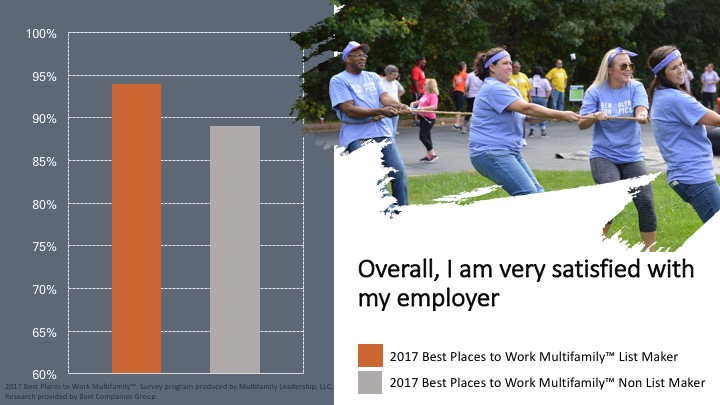 Amongst those that made the list of the Best Places to Work Multifamily™ 94% overall, believe they are very satisfied with their employer.