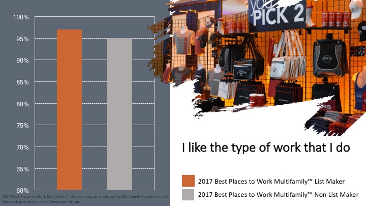 Amongst those that made the list of the Best Places to Work Multifamily™ 97% like the type of work that they do.