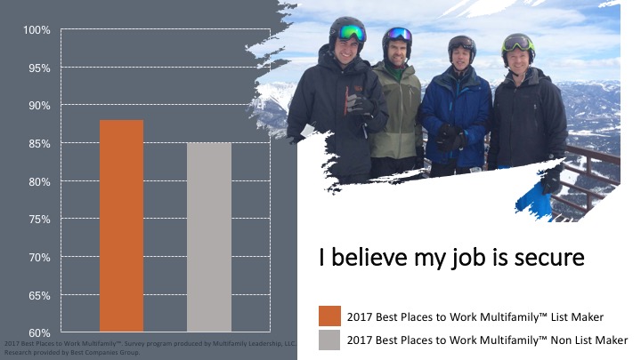 Amongst those that made the list of the Best Places to Work Multifamily™ 88% believe their job is secure.