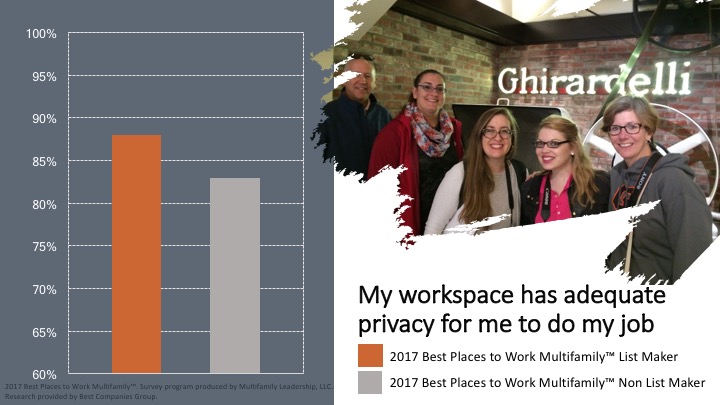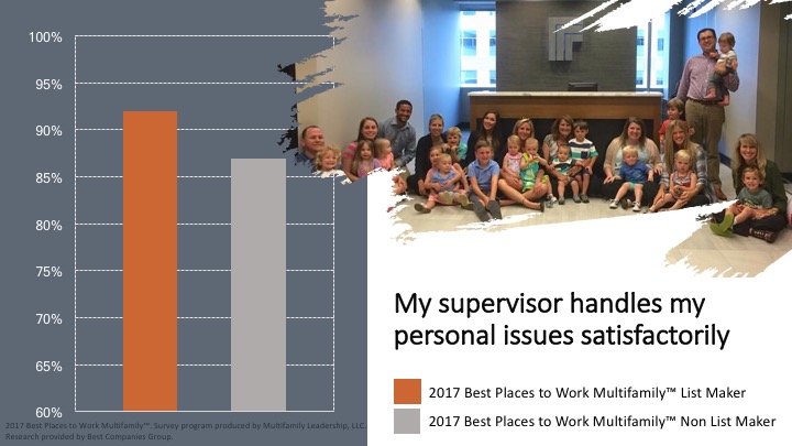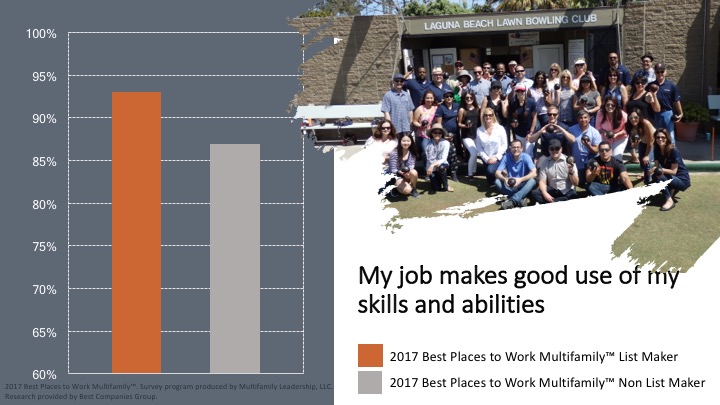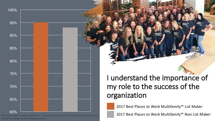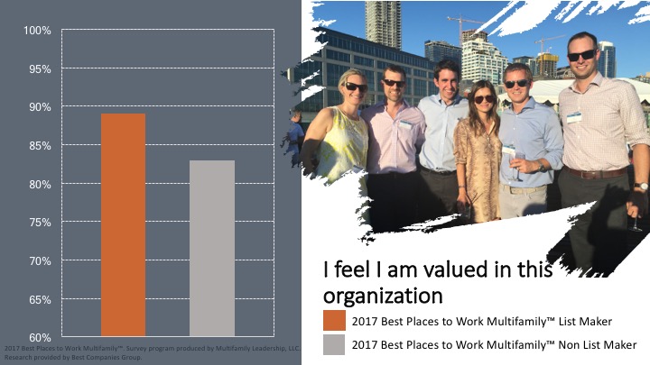 Amongst those that made the list of the Best Places to Work Multifamily™ 89% feel they are valued in their organization.
