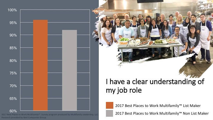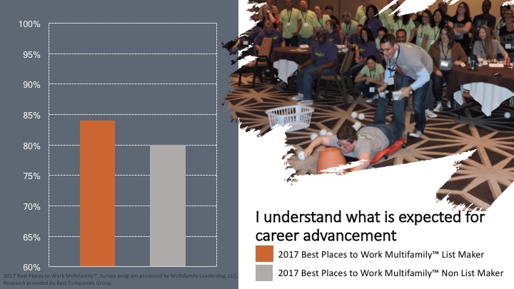 Amongst those that made the list of the Best Places to Work Multifamily™ 84% understand what is expected of them for career advancement.