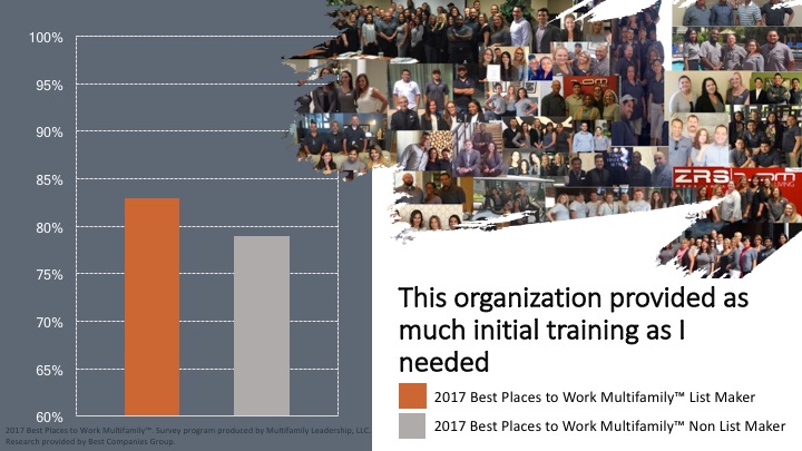 Amongst those that made the list of the Best Places to Work Multifamily™ 83% believe their organization provided as much initial training as they needed.