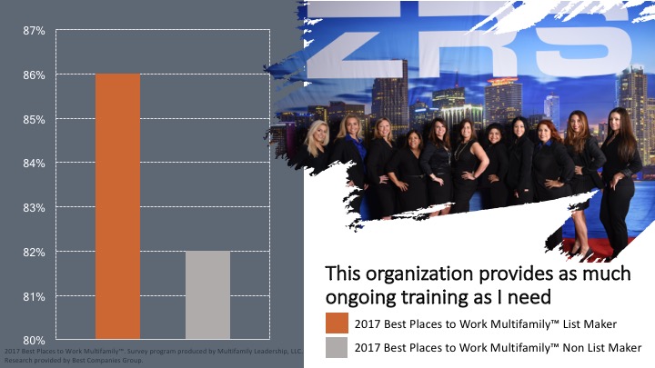 Amongst those that made the list of the Best Places to Work Multifamily™ 86% believe their organization provides as much ongoing training as they need.