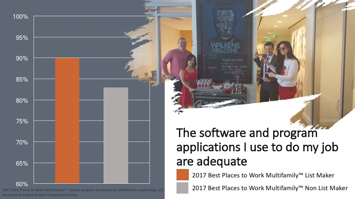 Amongst those that made the list of the Best Places to Work Multifamily™ 90% believe the software and program applications they use to do their job is adequate.