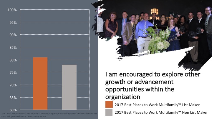 Amongst those that made the list of the Best Places to Work Multifamily™ 81% are encouraged to explore other growth or advancement opportunities within their organization.