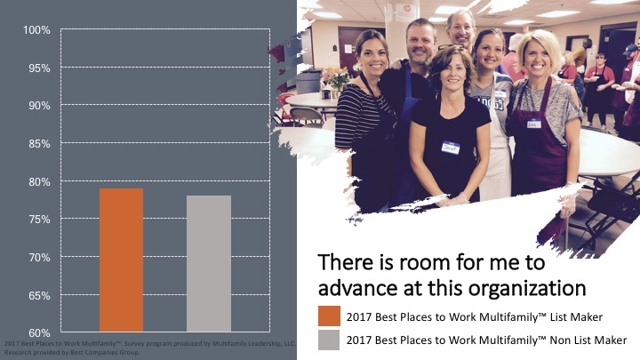Amongst those that made the list of the Best Places to Work Multifamily™ 79% believe there is room for them to advance in their organization.