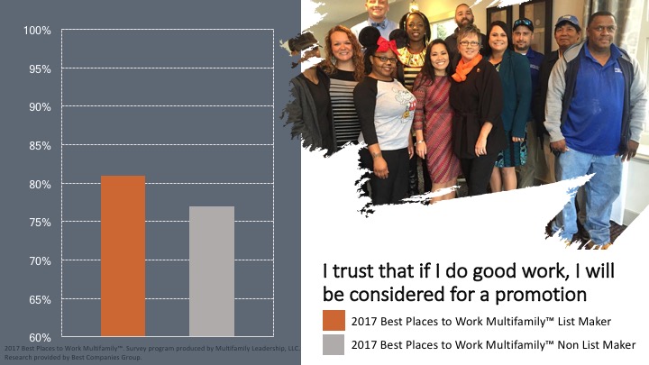 Amongst those that made the list of the Best Places to Work Multifamily™ 81% trust that if they do good work, they will be considered for a promotion.
