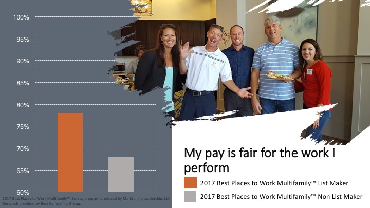 Amongst those that made the list of the Best Places to Work Multifamily™ 78% believe their pay is fair for the work they perform.