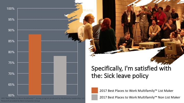Amongst those that made the list of the Best Places to Work Multifamily™ 88% specifically, believe they are satisfied with the: Sick leave policy.