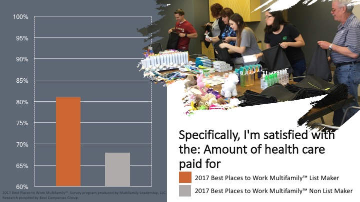 Amongst those that made the list of the Best Places to Work Multifamily™ 81% specifically, believe they are satisfied with the: Amount of health care paid for.