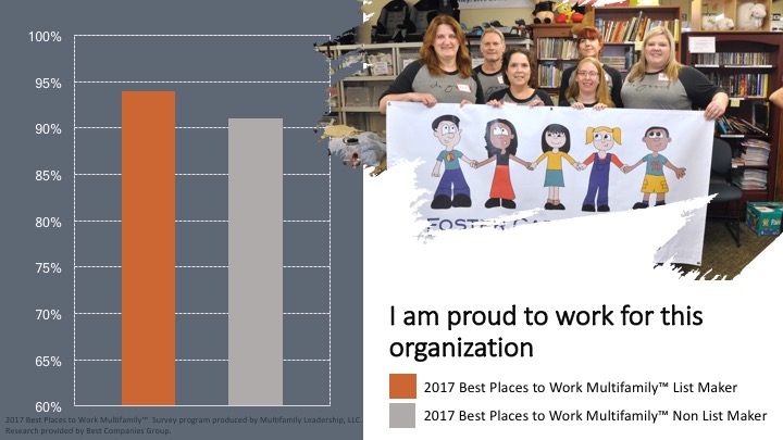Amongst those that made the list of the Best Places to Work Multifamily™ 94% are proud to work for their organization.