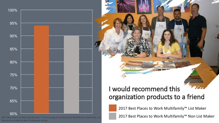 Amongst those that made the list of the Best Places to Work Multifamily™ 94% would recommend their organization’s products / services to a friend.